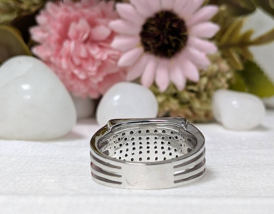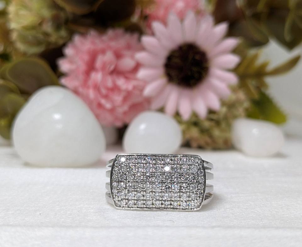 14K White Gold Men's Ring with 0.80 Ct Lab Grown Diamond Cluster Vintage Style Classic Jewelry Unique Pave Set Design