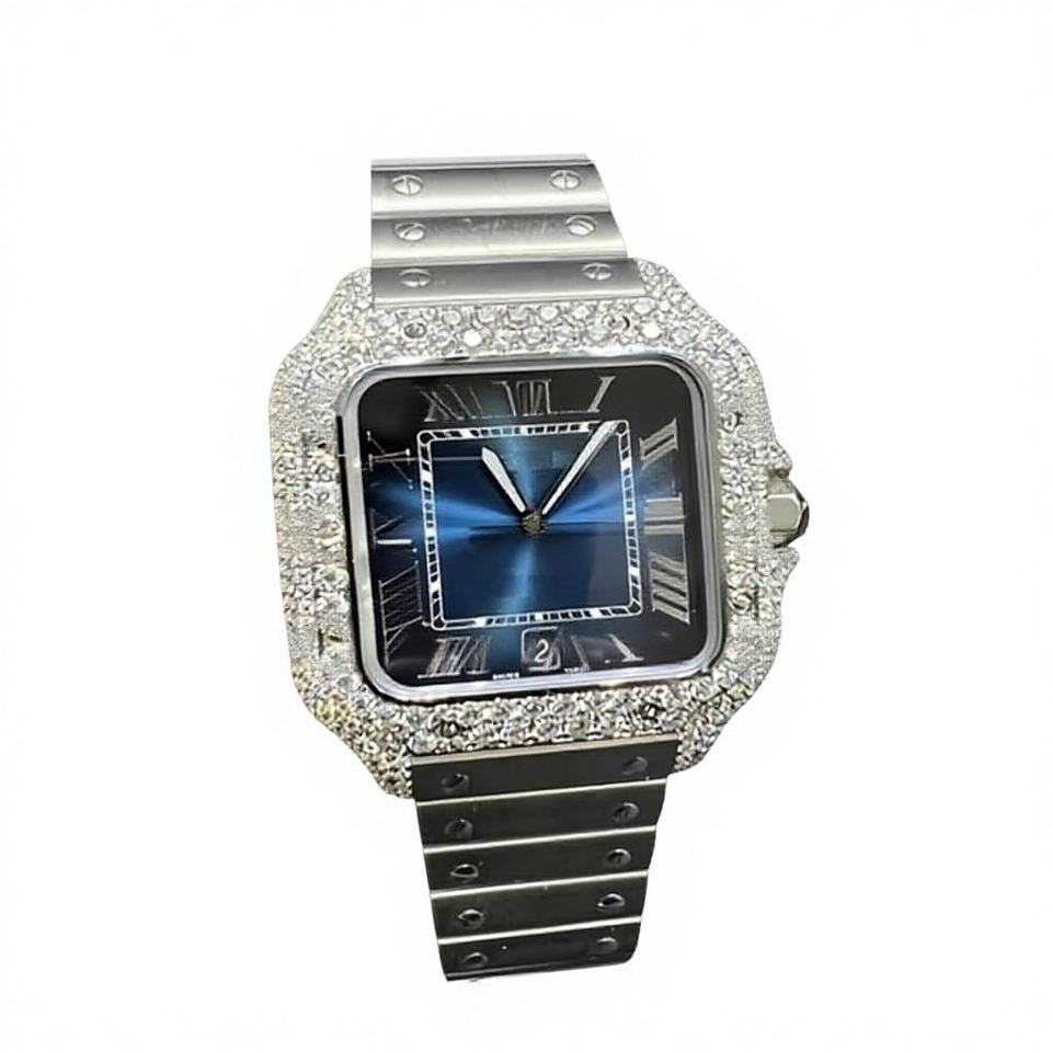 14K White Gold Moissanite Stainless Steel Case Automatic Mechanical Square Watch 10 Bar Bracelet Clasp Glass Dial India