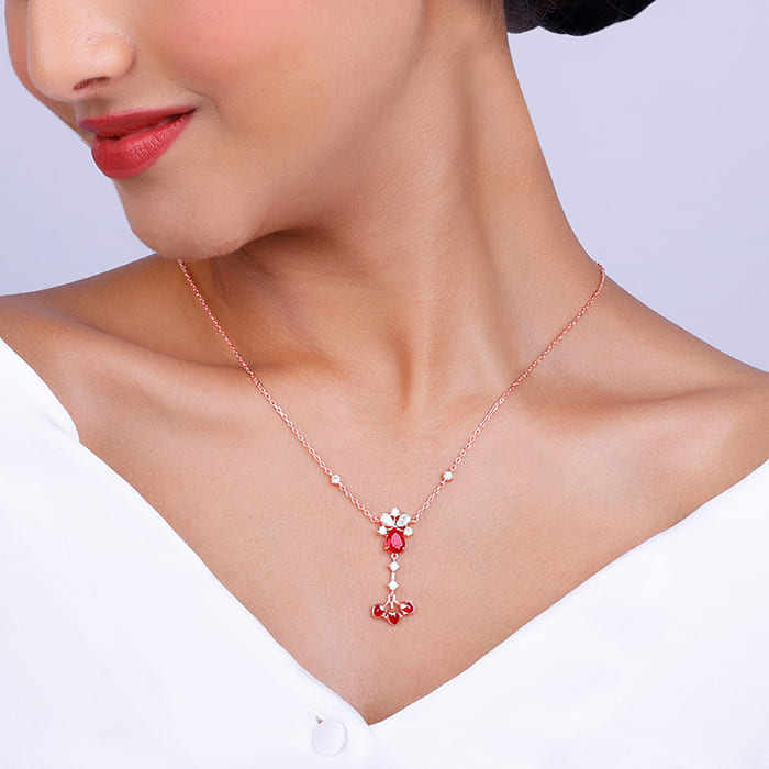 14K White Gold Necklace Glory Love Design Box Chain Freshwater Pearl Princess Cut Zircon Moissanite Rose Gold Flower Pattern