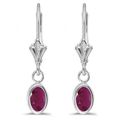 14K White Gold Oval Ruby Lever-back Drop Earrings 1.20ct Fashionable Style