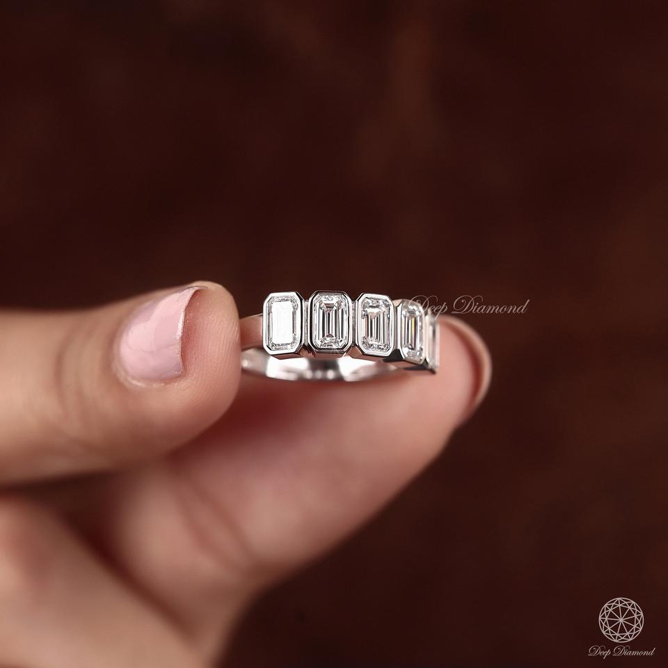 Product name:Emerald Cut 14K White Gold Half Eternity wedding band