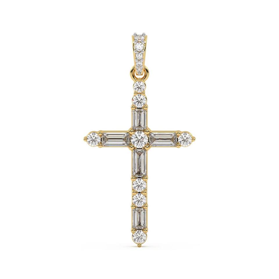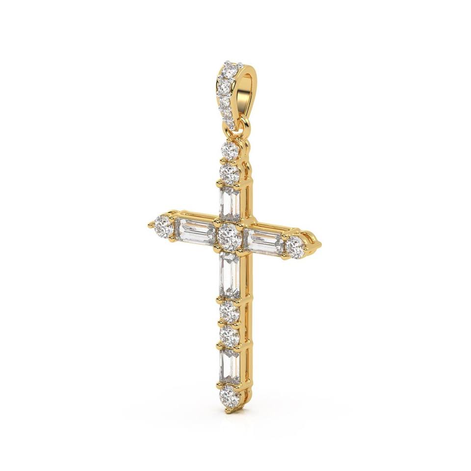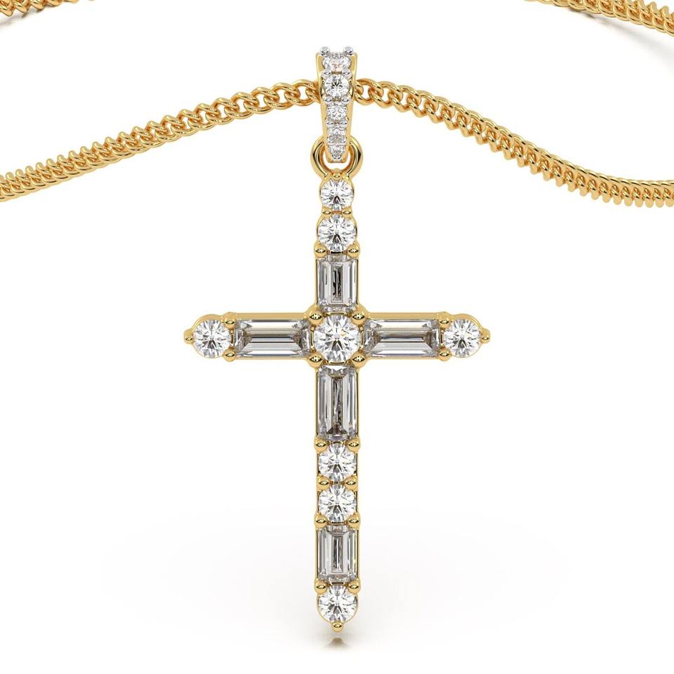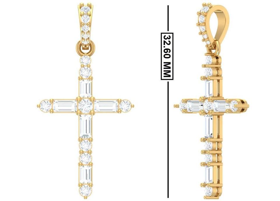 Rose Gold Plated 925 Sterling Silver Cross Pendant Necklace with Round Brilliant Cut Moissanite Vintage Style Women's Gift