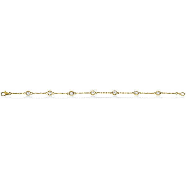 14K Yellow Gold Bezel Set Diamond Anklet Bracelet 1.00ct Premium Fine Jewelry