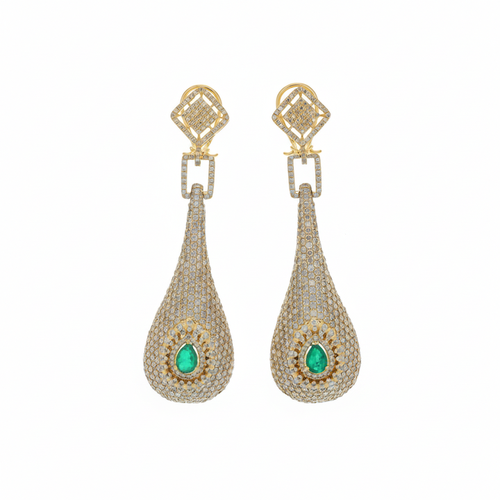 14K Yellow Gold Elegant Red Carpet Glamour Long Drop Earrings with CVD Diamonds for Wedding Party Gift Engagement