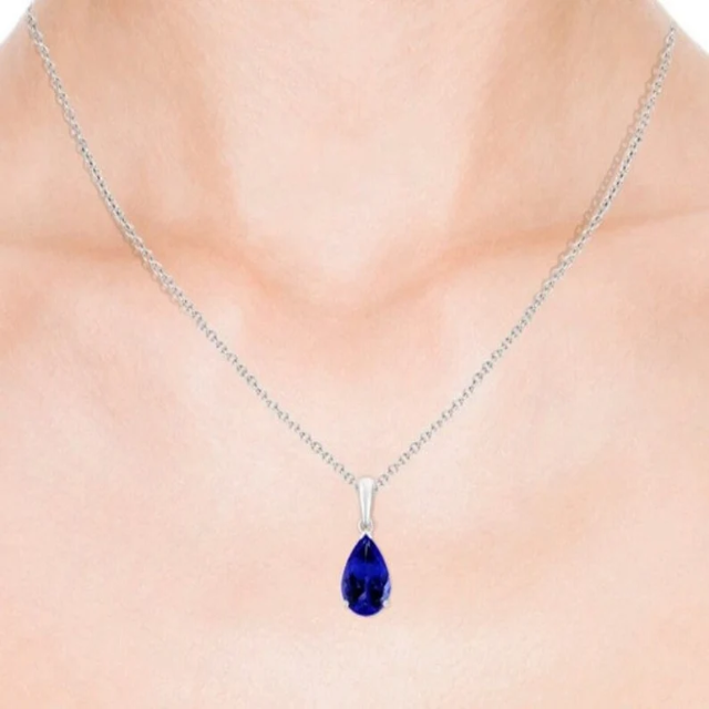 14K Yellow Gold Figaro Chain Pendant Necklace Tanzanite Gemstone Rhodium Plated Trendy Minimalist Design for Women Wedding