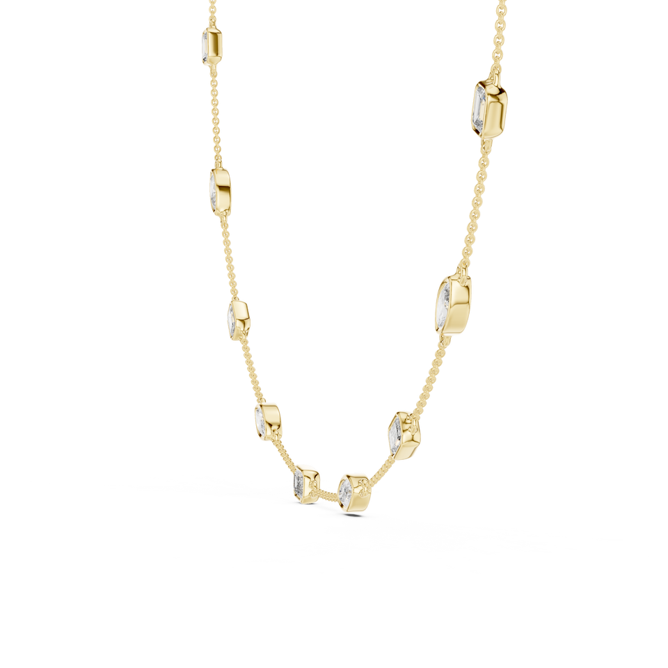 14K Yellow Gold Lab Grown Emerald Cut Aurora Bezel Diamond Luxury Chain Necklace