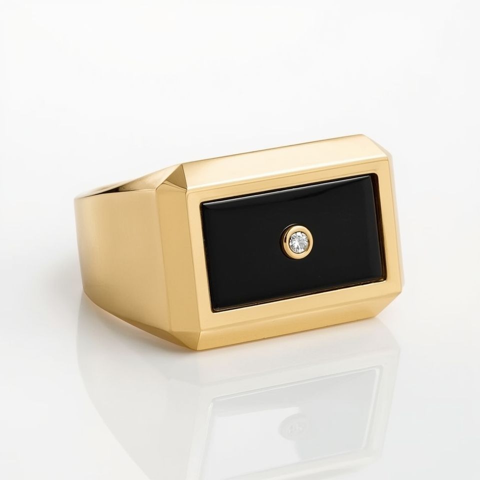 14K Yellow Gold Men's White Gold Color Rhodium Plated Ring with Blue Sapphire Modern Fine Jewelry Trend 2025 OEM Wedding & Party