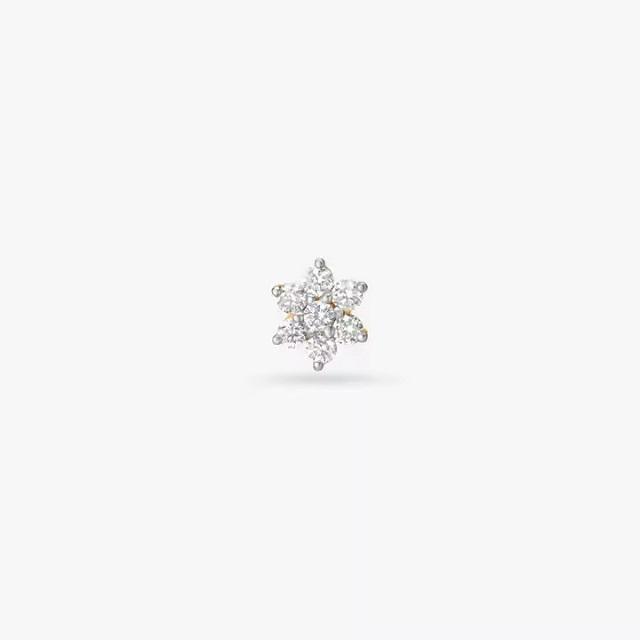 14K Yellow Gold Mini Cluster Nose Stud Piercing Nose Ring With Lab Grown Diamonds Flower Shape Screw Nose Stud for Weddings