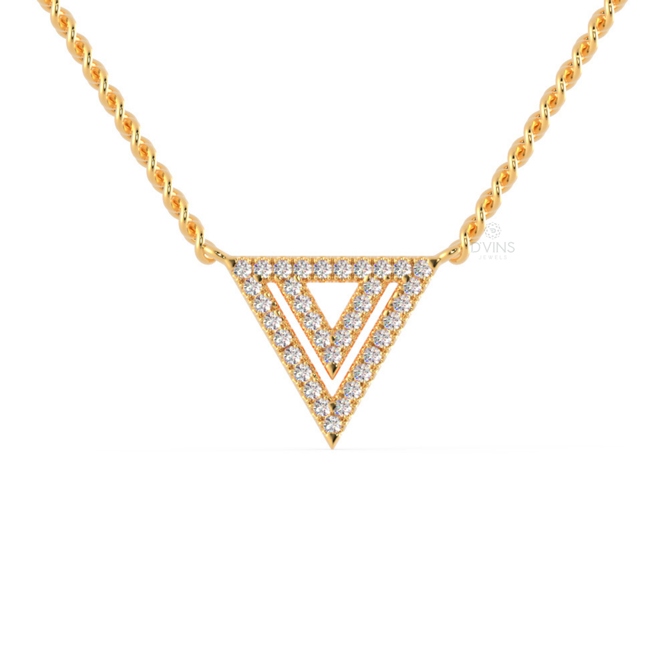 14K Yellow Gold Open Triangle Pendant Necklace with Diamond Pave Classic Lab Grown Diamond Charm for Women