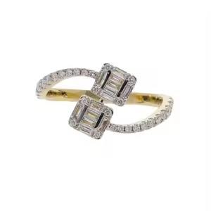 14K Yellow Gold Open Wrap Rhodium Plated Classic Diamond Ring 0.60CTW Natural Dual Brilliant Cut Square Accents Elegant
