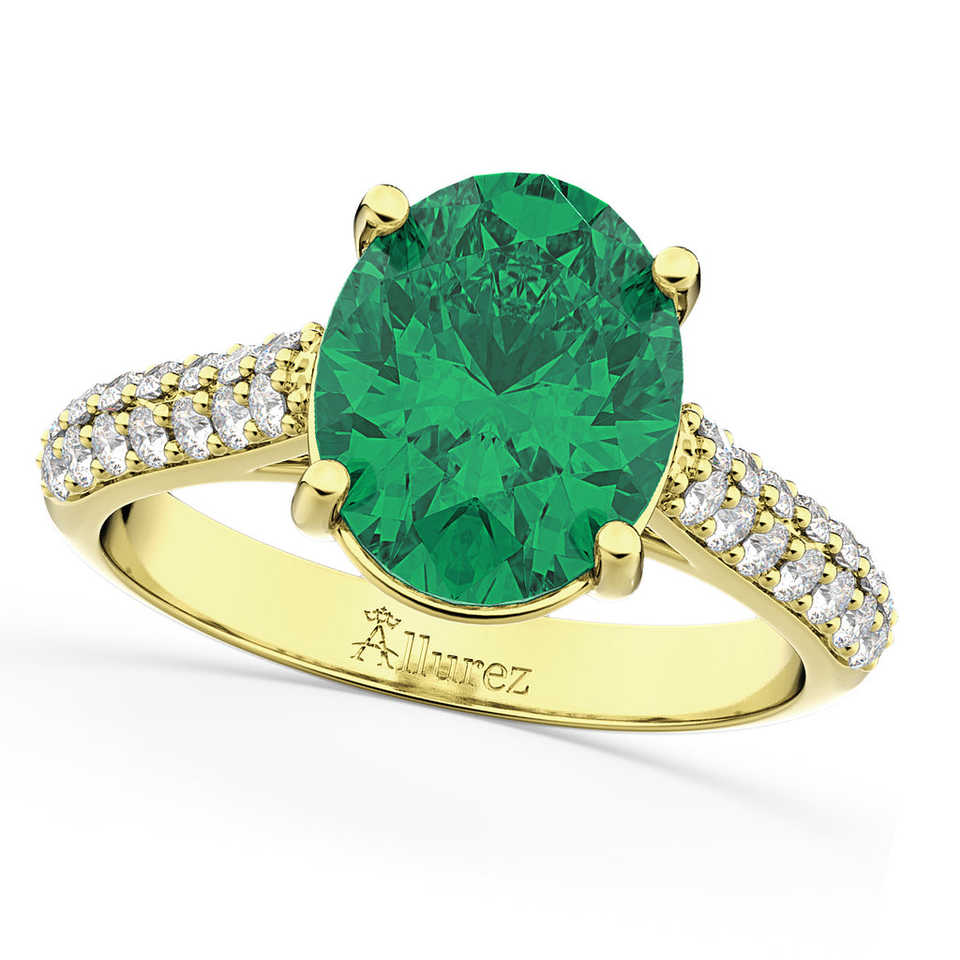 14K Yellow Gold Oval Emerald & Diamond Engagement Ring 4.42ct Diamond Rings Collection