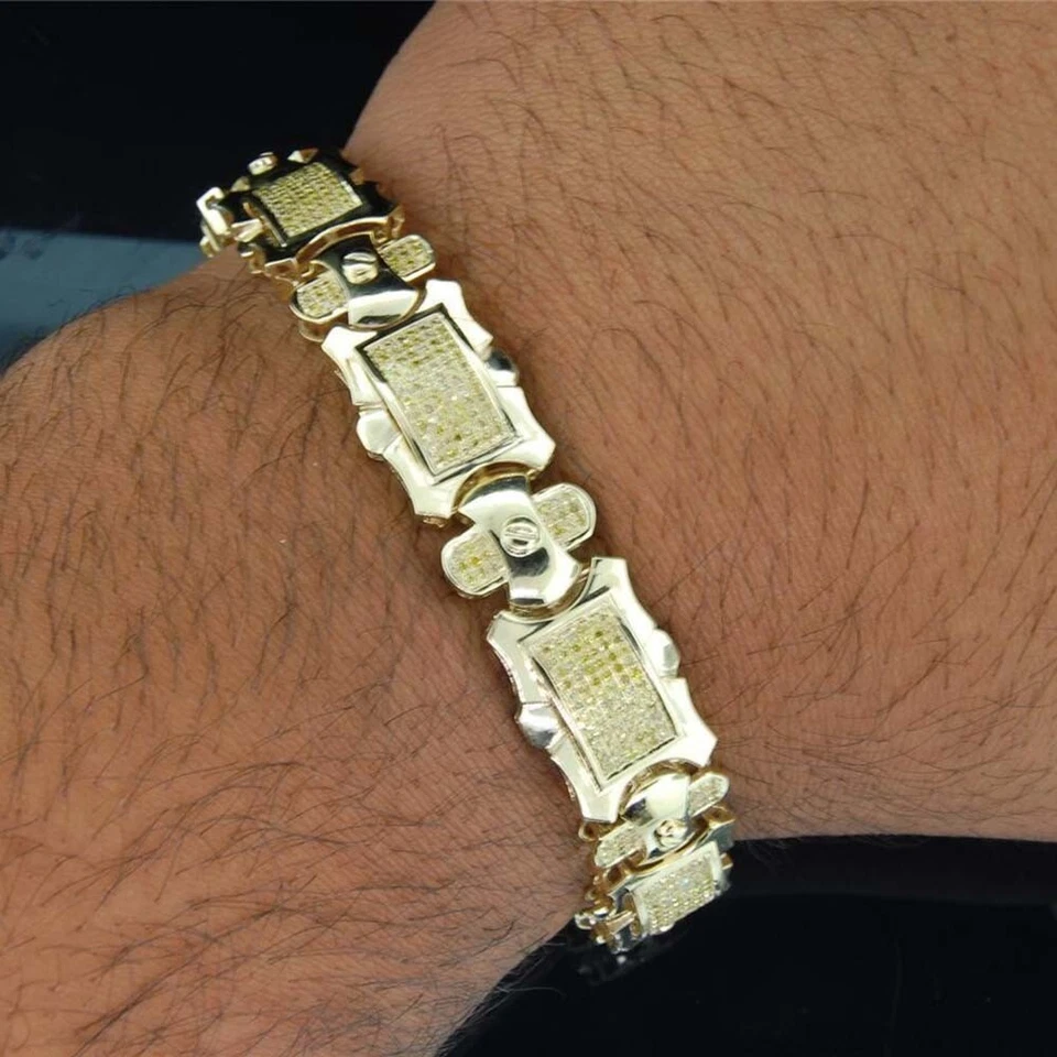 14K Yellow Gold Plated Men's Bracelet with 3.50 Ctw Yellow Diamond 8.5 Inches Pave Link Style