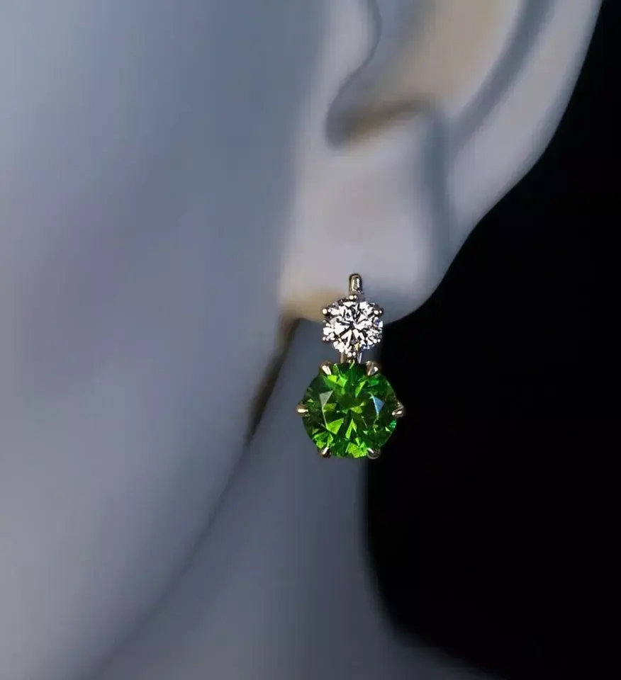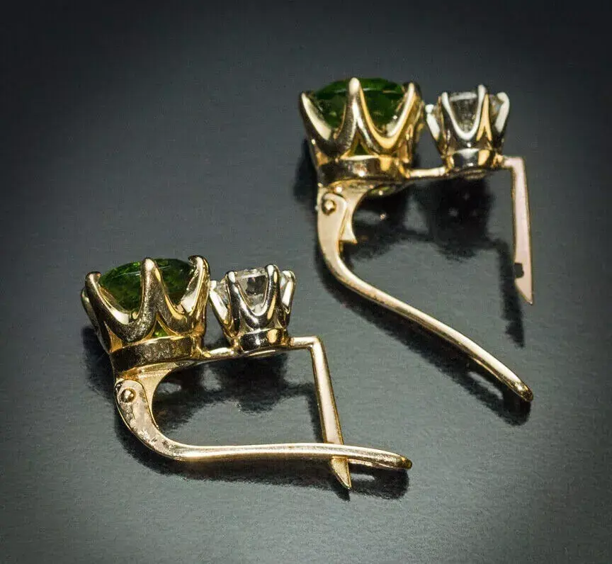 14K Yellow Gold Plated Round Cut Simulated Green Emerald Drop Earrings Pretty Diamond Jewelry
