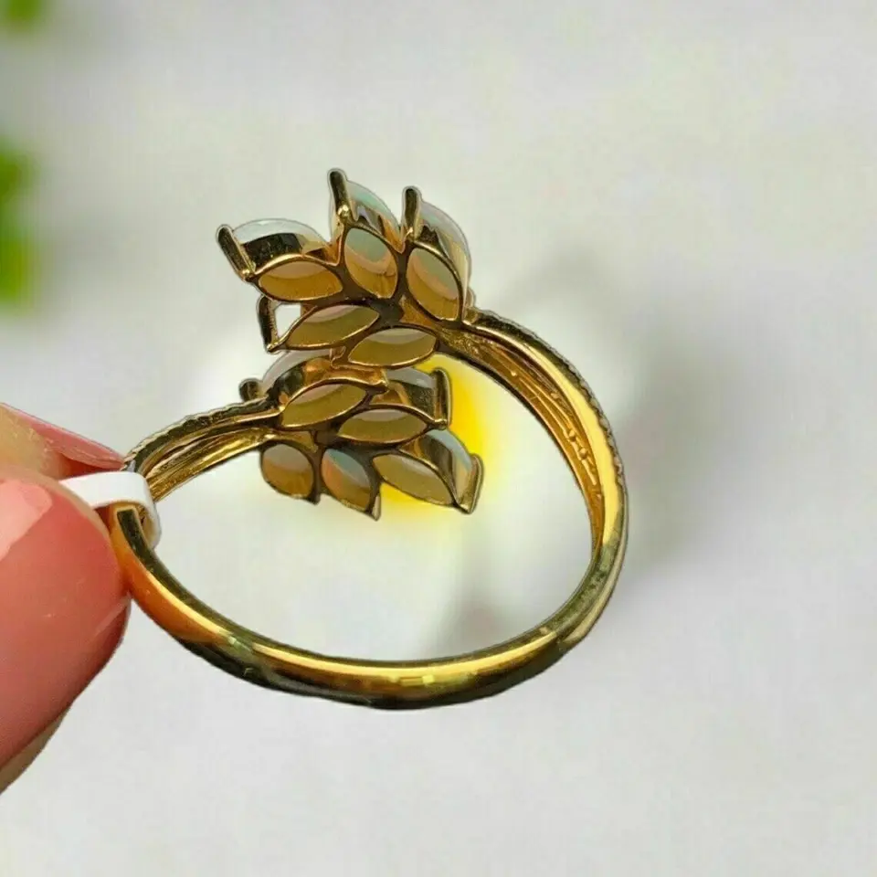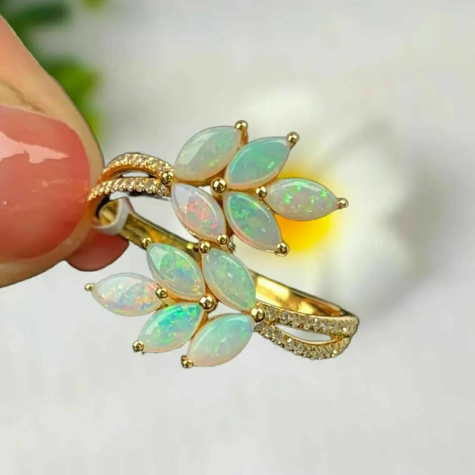 925 Silver 3Ct Marquise Cut Moissanite Diamond Simulated Fire Opal Cocktail Ring for Engagement or Party