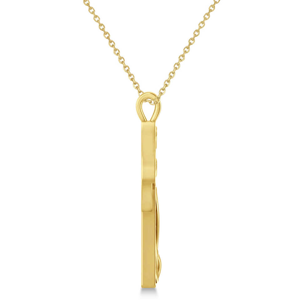14K Yellow Gold Religious Celtic Cross Pendant Necklace with Freshwater Pearl Diamond Zircon Geometric Shape Rhodium Plated