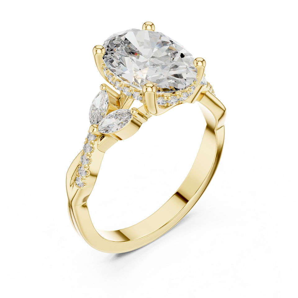 14K Yellow Gold Round, Marquise & Oval Lab-Grown Diamond Engagement Ring for Women | New Grown Diamond