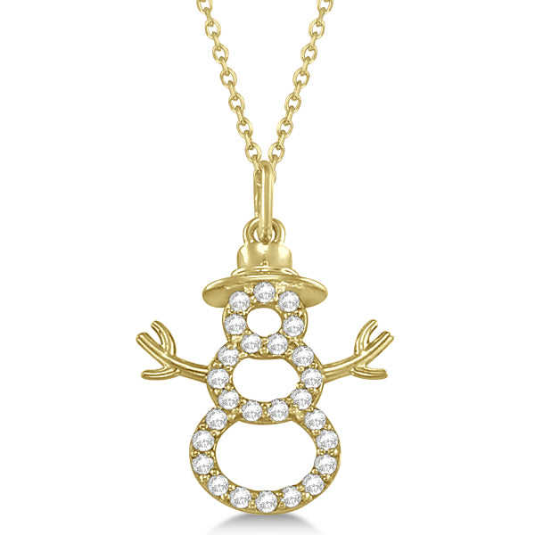 14K Yellow Gold Snowman Diamond Necklace Pendant 0.13ct Diamond Accented Unique Diamond Charms