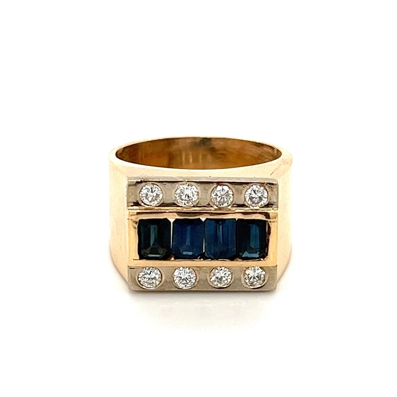 14K Yellow Gold Vintage Emerald Cut Blue White Moissanite Diamond Ring for Men Blue Sapphire Diamond Certified IGI Fashionable