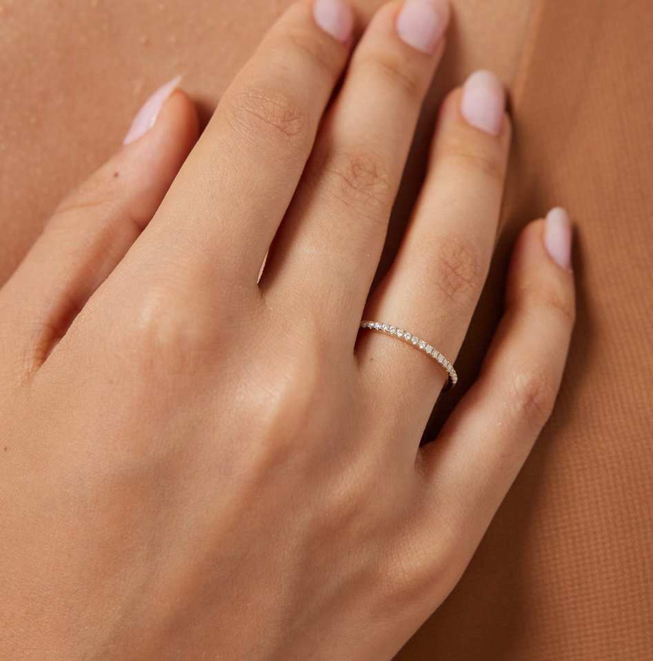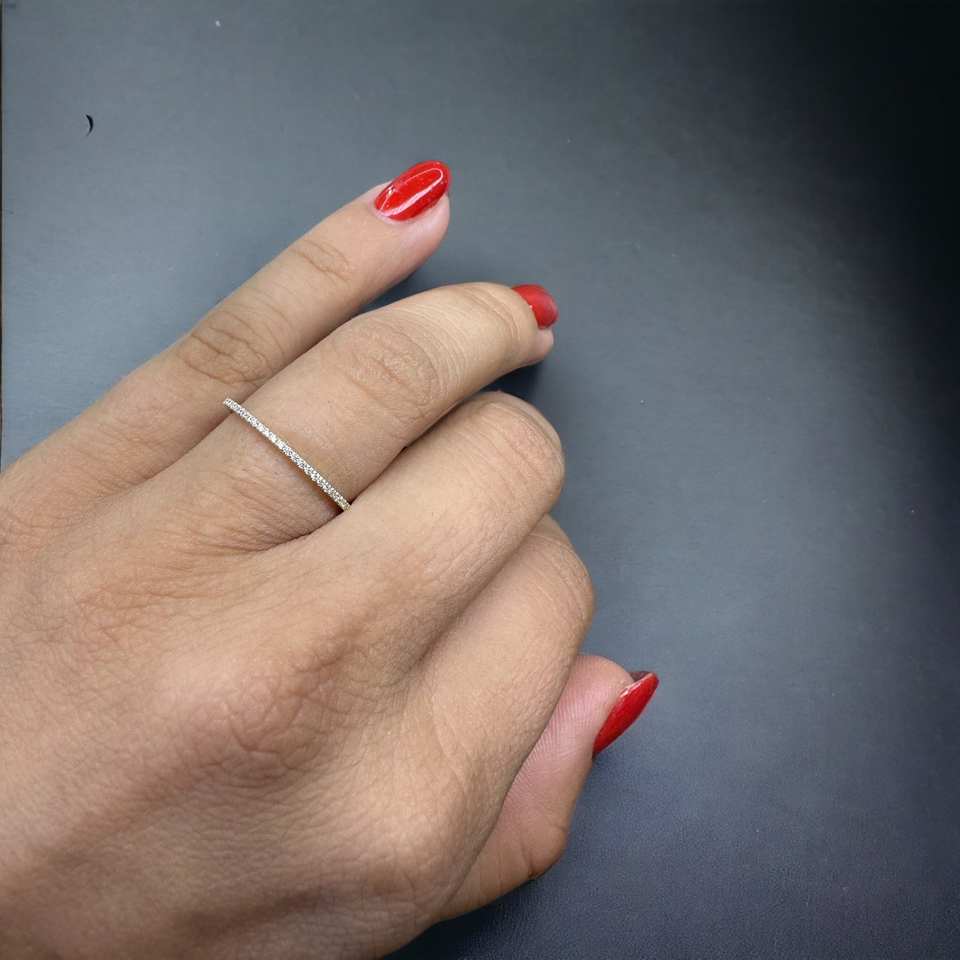 14K Yellow Gold Super Thin Wedding vermeil eternity Band for Women Dainty Wedding Bands with Thin Diamond Fine Rings for Wedding