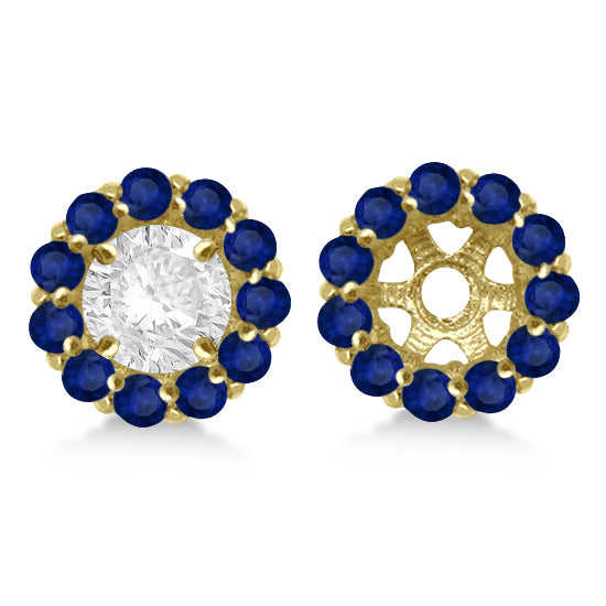 14K Yellow & Rose Gold Round Blue Sapphire Earring Jackets 6mm Studs with 1.20ct Diamond Flower-shaped Trendy Style