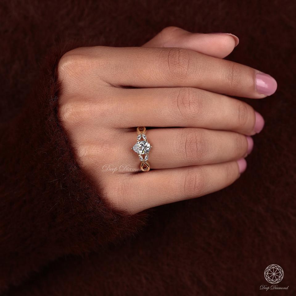 Leaf Style Pear Cut Lab Diamond Engagement Ring 14K Gold Twisted Band