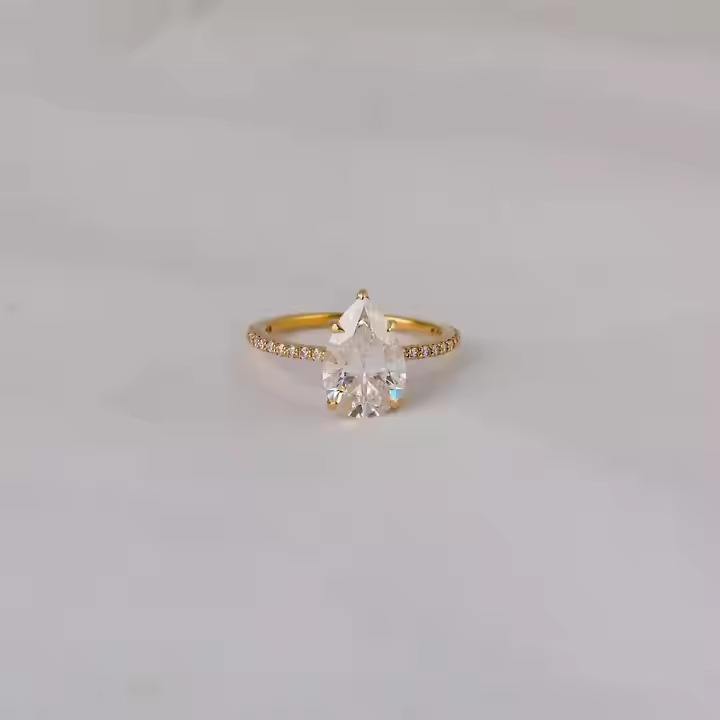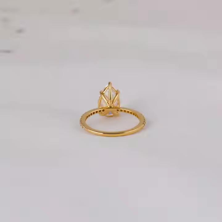 14KT Gold Plated Luxury Engagement Ring Pear Cut Lab Grown Diamond Half Eternity Round Cut Side Diamond Surprise Gift for girls