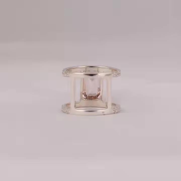 14KT Solid Gold Ring Pink Emerald Cut Lab Grown Diamond Custom Ring with unique design Diamond Engagement Ring Bypass Setting