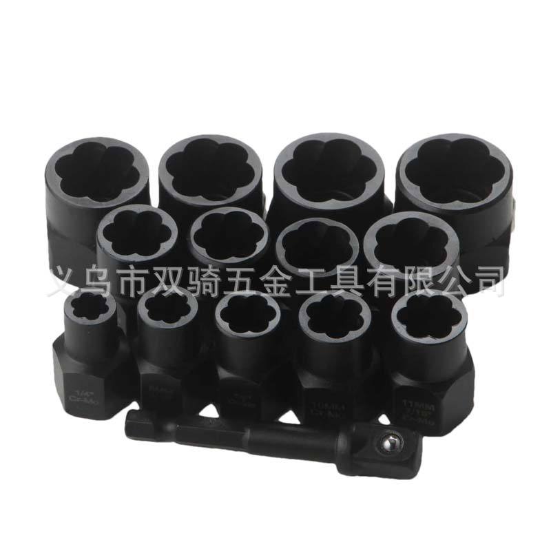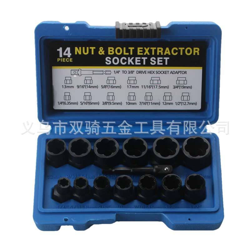 14Pcs Reverse Thread Nut Extractor Socket Set Imperial Inch Drive 0.8 In Household Rust Remover Tool Kit