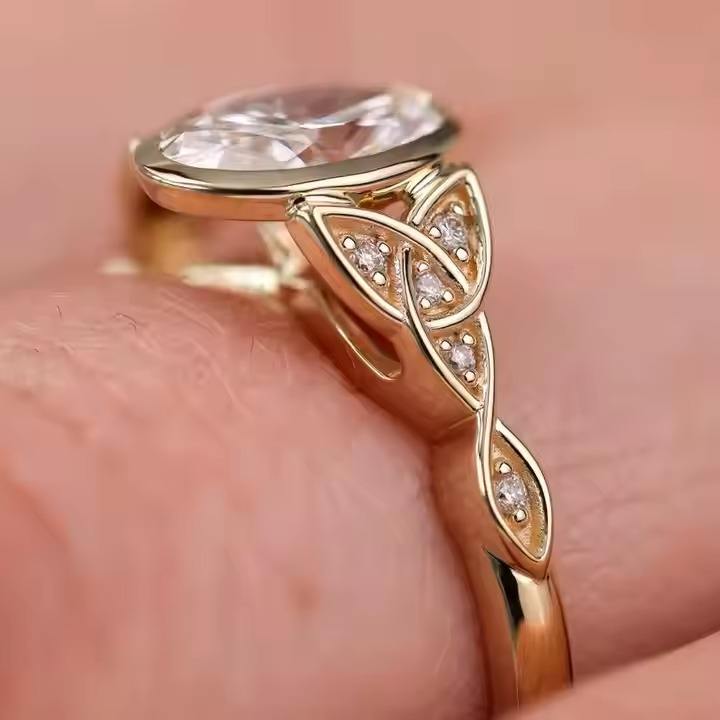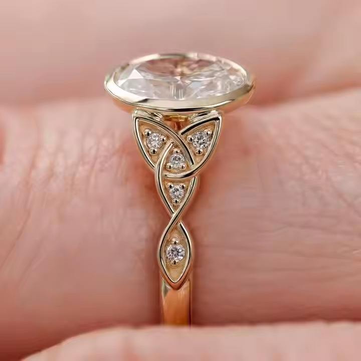 14k Gold 2.00 CT Oval Cut Bezel Celtic Lab Grown Diamond Engagement Ring For Her Lab Grown Diamond Ring for Women