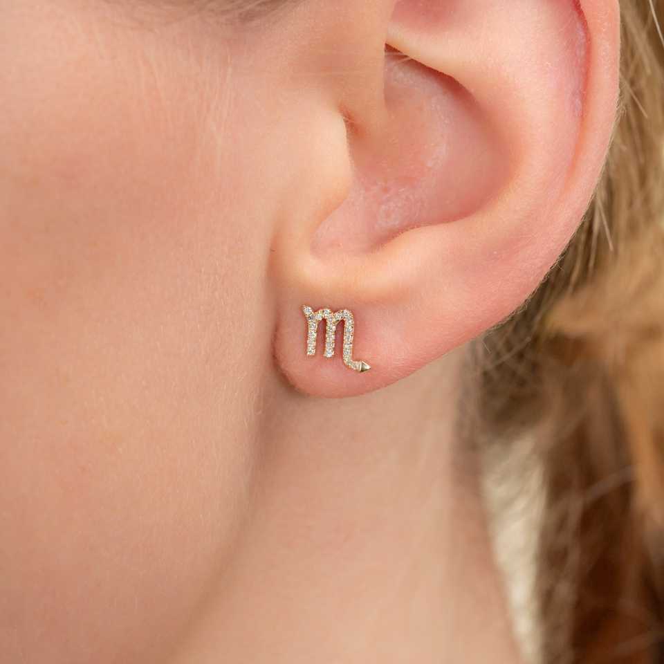 14k Gold Diamond Zodiac Signs Stud Earrings Horoscope Shapes Natural Diamond Stud Earrings Wholesale Bulk Fine Jewelry Earrings