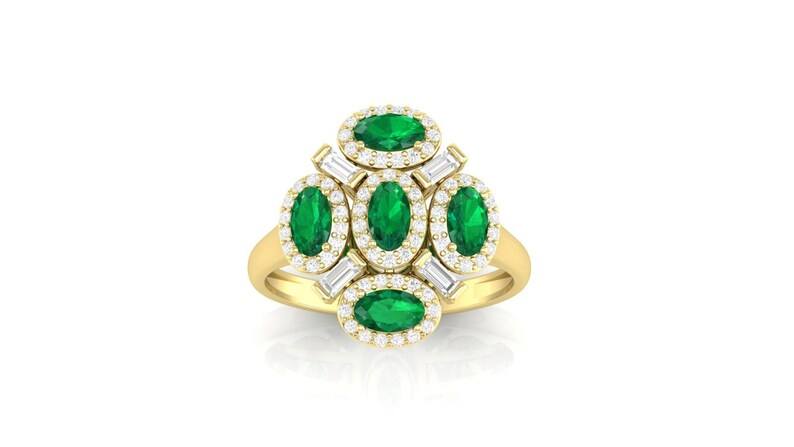 14k Gold Ladies' Art Deco Engagement Ring 1.50 CTW Original Lab Grown Emerald Oval Cut Perfect Anniversary Gift for Weddings