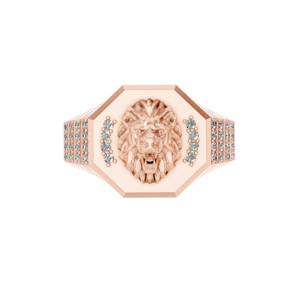 name or words:Custom Lion Head Ring with Natural Diamonds