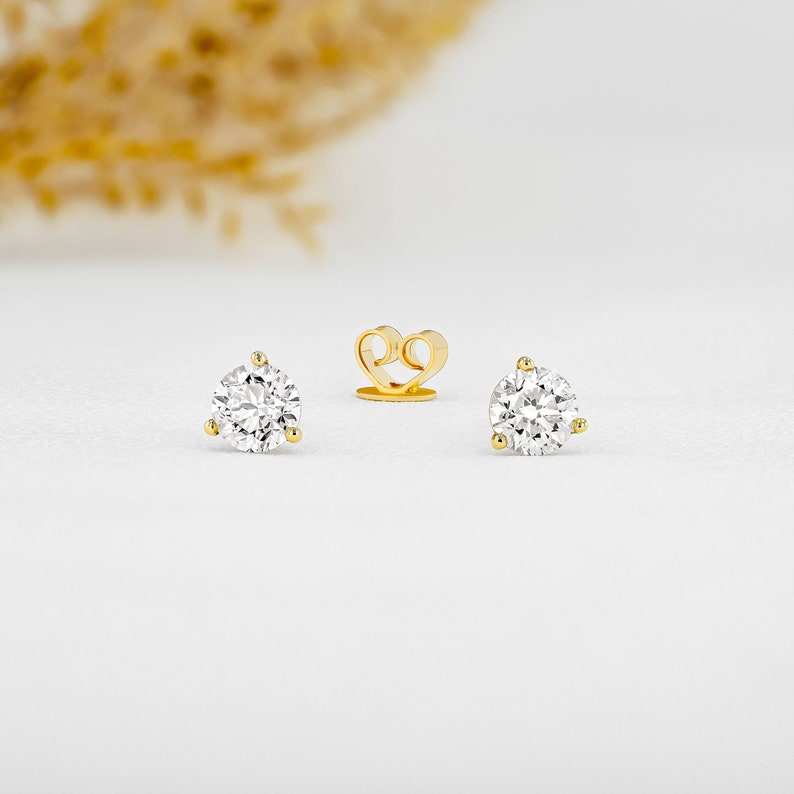 14k Gold Natural Diamond Prong Martini Set Stud Earrings Minimalist Design Luxury Statement Jewelry Single (Half Pair) Earrings