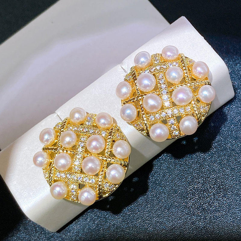 14k Gold Plated Antique Style Freshwater Pearl Stud Earrings Niche Design with S925 Silver Ear Needle Injection Small Fragrance