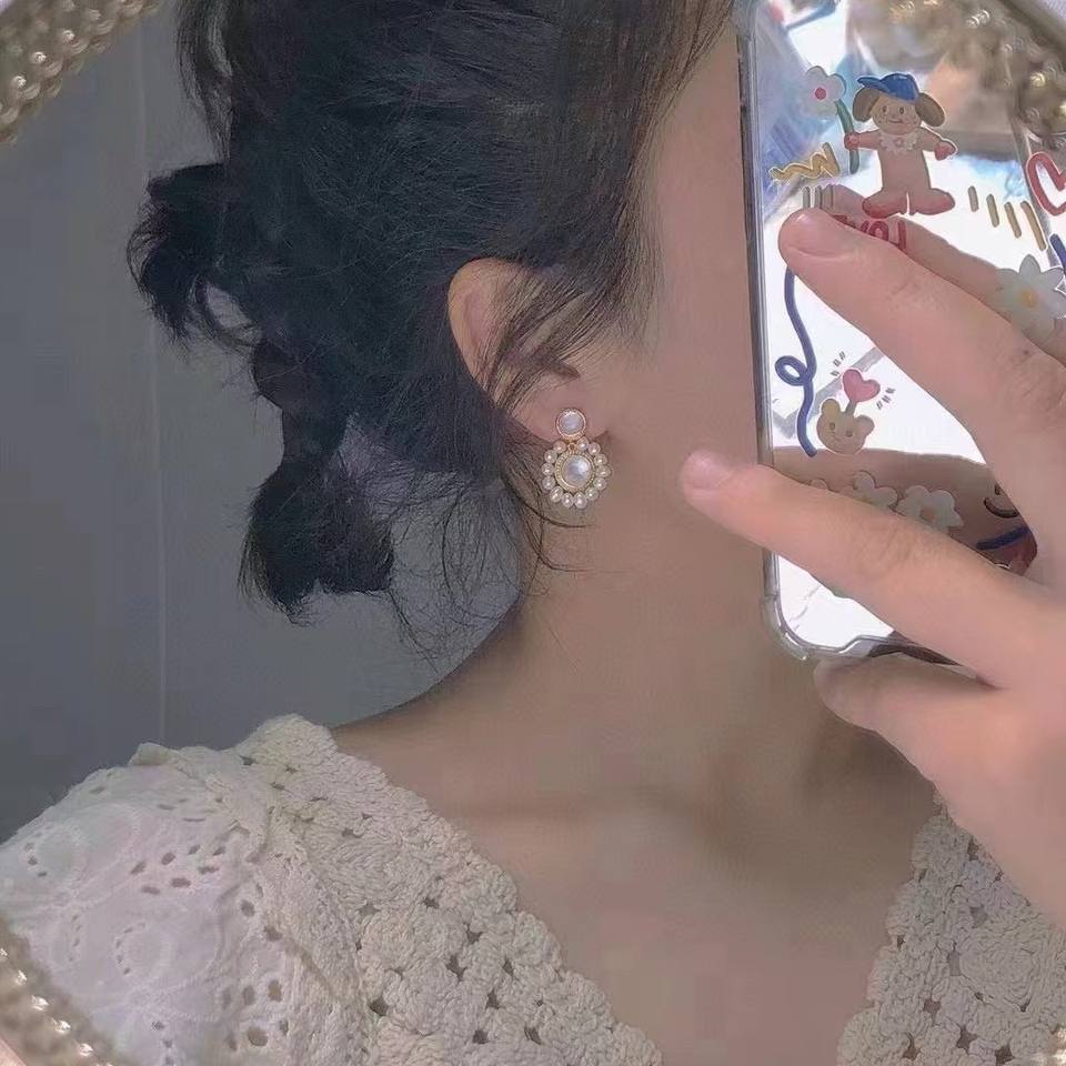 14k Gold-Plated Mother Pearl Earrings Exquisite 3-4mm Natural Freshwater Zhuji Pearl High-End Pure Silver Personalized Jewelry
