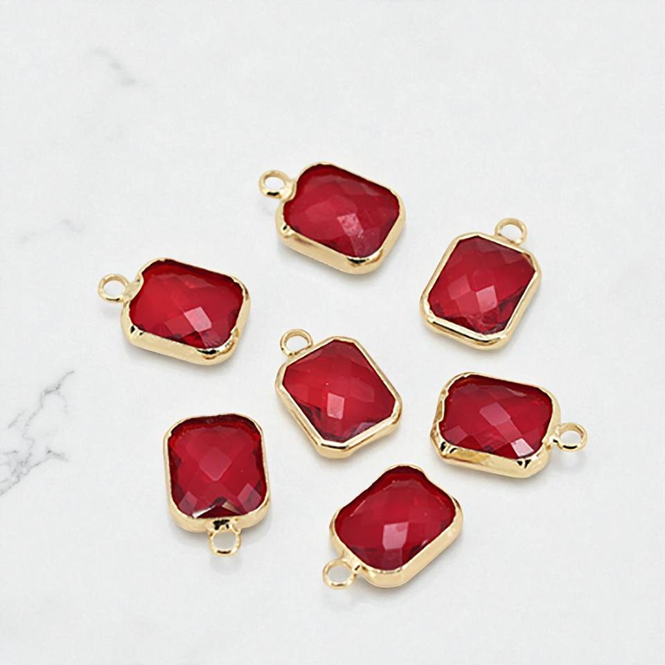 14k Gold Plated Rectangle Garnet Gemstone Charm Pendant - 10x12 MM Handmade Charms - 925 Silver Finding Charms Wholesale