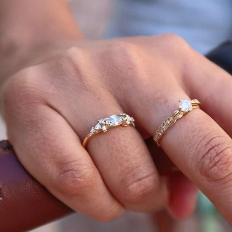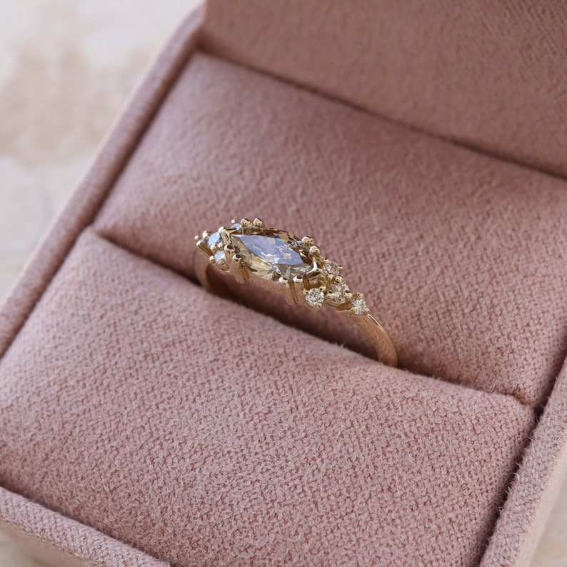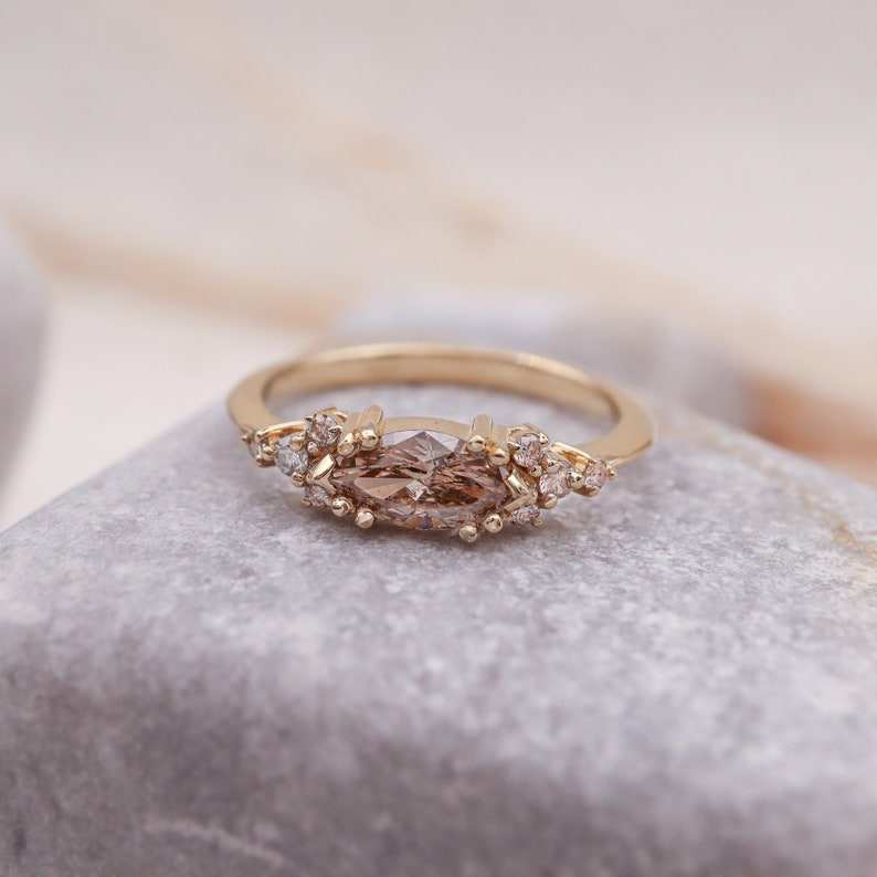 14k Gold Surprise Engagement Ring Brown Marquise Cut Lab Grown Diamond Promise Ring Jewelry for Wedding Party Gift For Bride