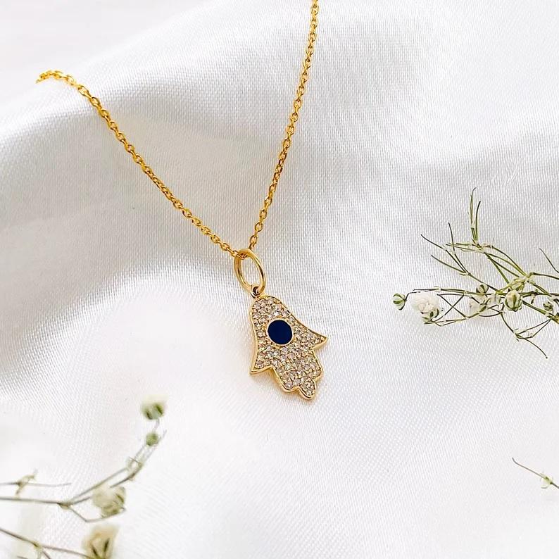 14k Hamsa Lab Grown Diamond Pendant Solid Gold Lab Grown Diamond Wedding Necklace Women Necklace for Anniversary Jewelry
