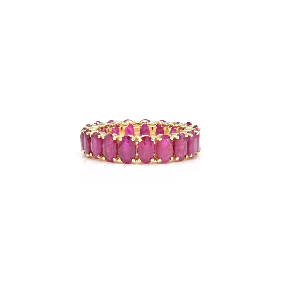 14k Real Yellow Gold Stackable Full Eternity Band 5x3mm Oval Cut Natural Burma Ruby Wedding Band July Birthstone Jewelry US-5