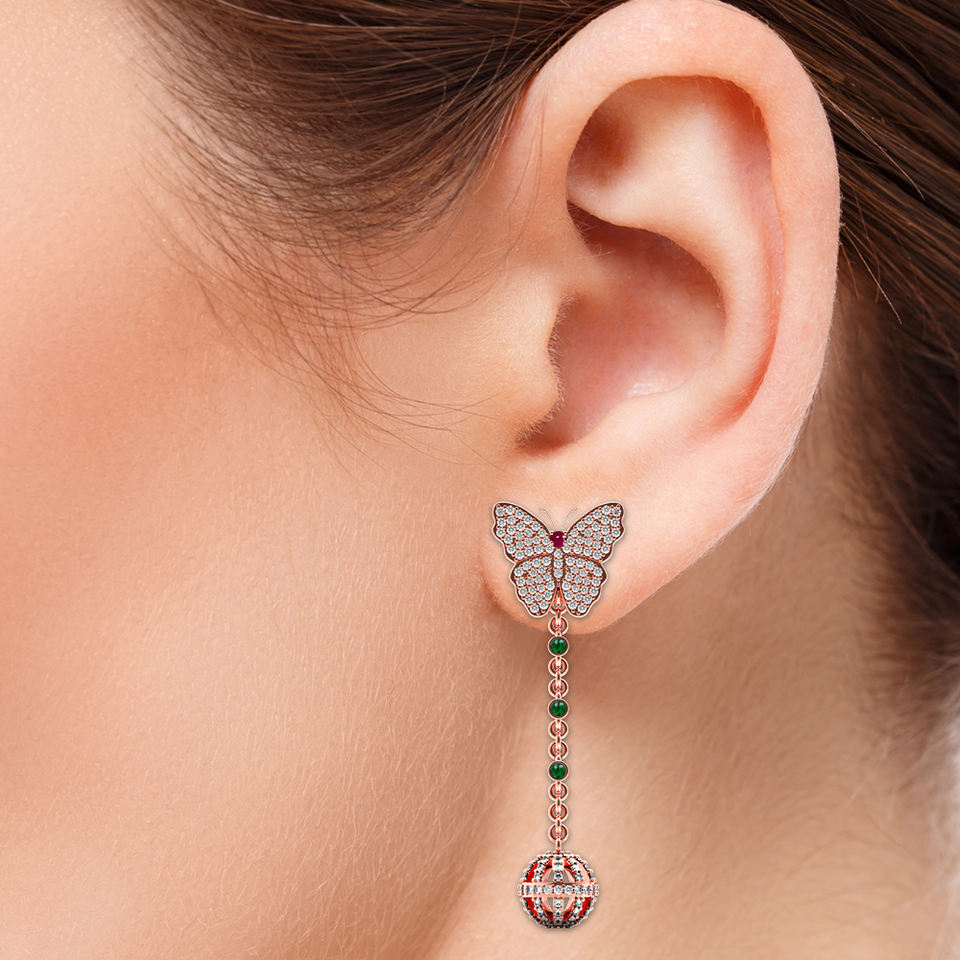 14k Rose Gold Pave Setting Diamond Bar Earring, Gemstone Butterfly Bar Design Diamond Earring, New Design Earrings