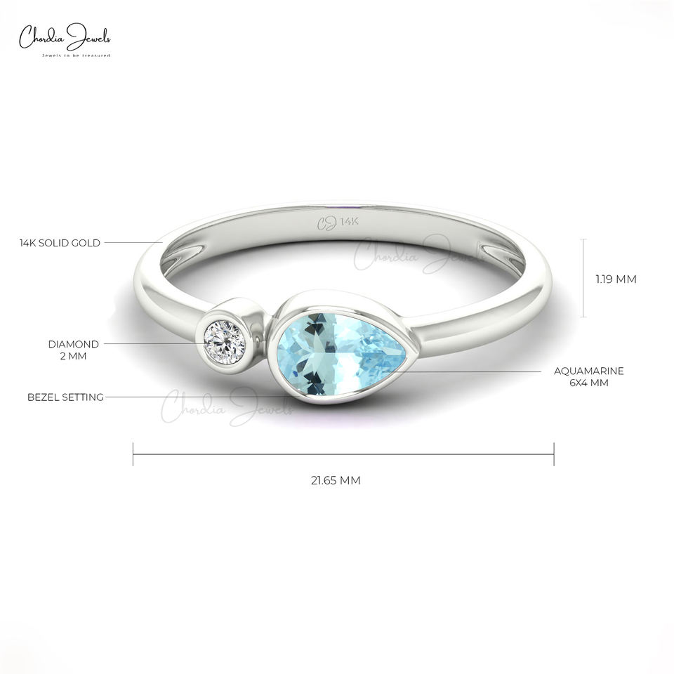 High Selling Products 6x4mm Pear Aquamarine Gemstone Wedding Ring Real 14k Gold Diamond Bezel Set Ring Direct Wholesale Supplier