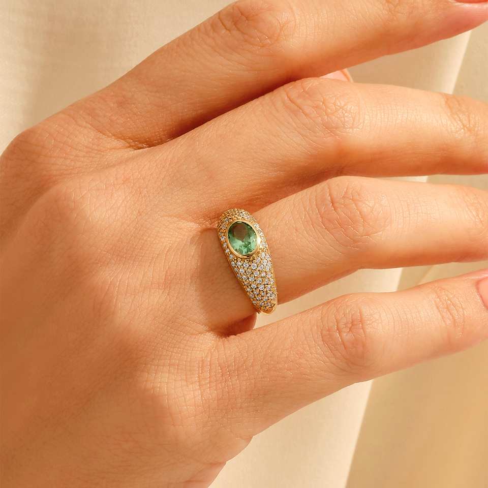 14k Solid Gold Chunky Dome Bezel Green Paraiba Tourmaline Gemstone Diamond Statement Bold Mothers Ring Vintage Birthstone Ring