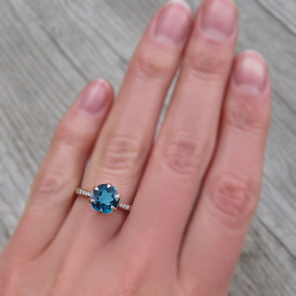 14k Solid Gold Cut London Topaz Real Diamond Engagement Ring for Women Dainty Prong Setting Stone Cute Design for Wedding Party