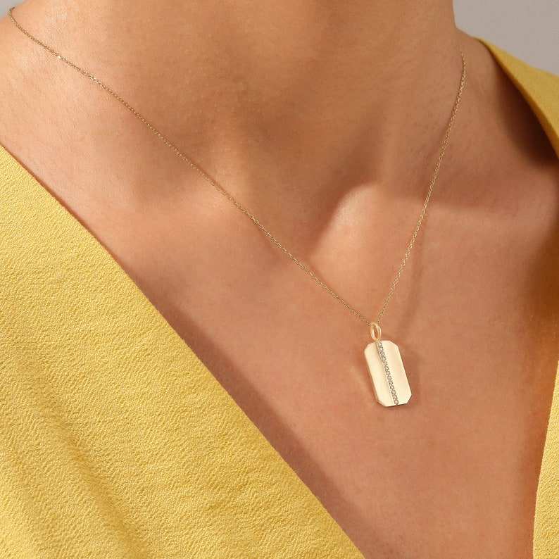 14k Solid Gold Lab Diamond Emerald Cut Pendant Necklace Dainty Line Pave Necklace for Women Eco-Friendly Handmade Gift Jewelry