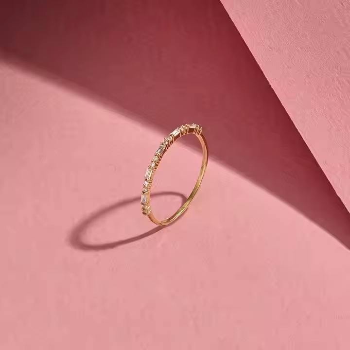 14k Solid Gold Minimal Wedding Ring Thin Stacking Half Eternity with Vermeil Dainty Baguette Ring Featuring Lab Grown Diamond