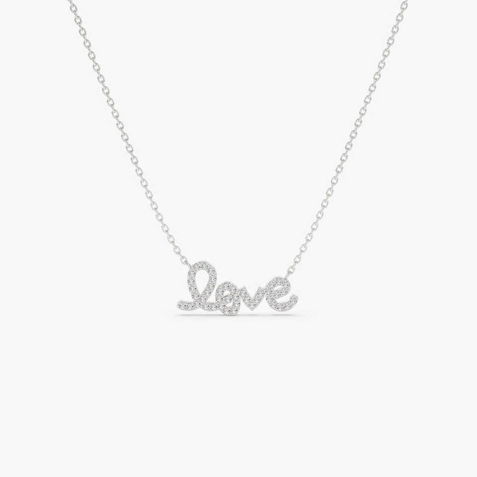 14k Solid Gold Natural 0.21 Ctw Diamond Love Pendant Necklace Trendy Alphabet Letter Jewelry Unique Love Unisex Pendant Necklace