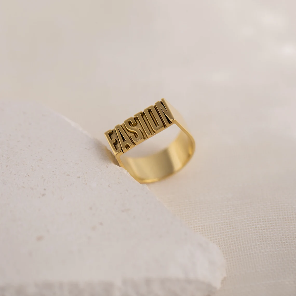 14k Solid Gold Plated Custom Bold Name Ring by Caitlyn Minimalist With Chunky Statement Personalized Ring for Unisex Jewelry