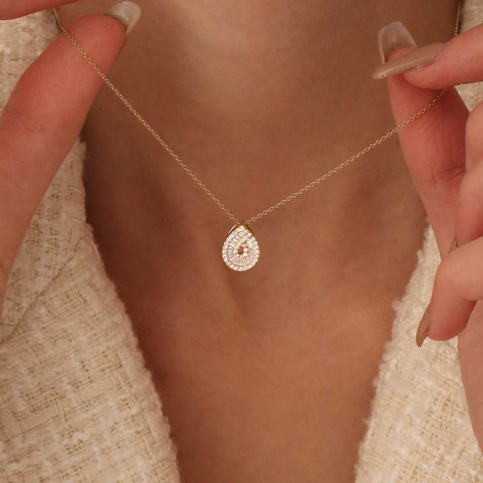 14k Teardrop Shape Baguette And Round Diamond Statement Pendant Necklace Fine Jewelry Valentine Gift 0.48 CTW Diamond Pendant