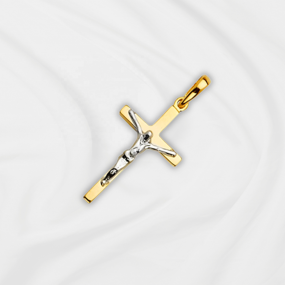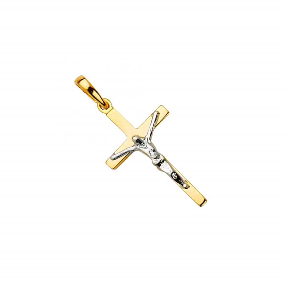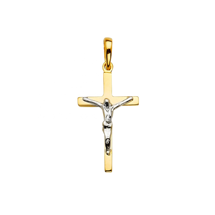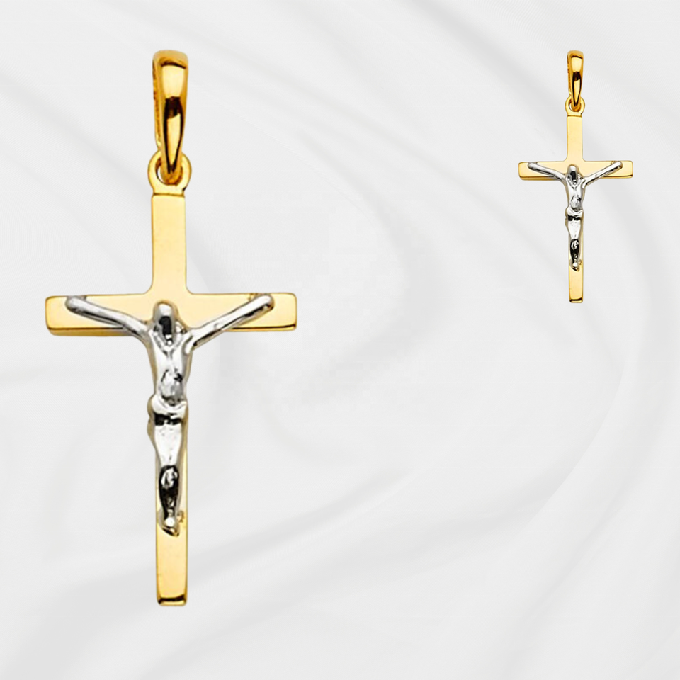 Super Stylish 14K Two Tone Gold Crucifix Cross Pendant Fashion Fancy Religious Jewelry for Women Men Children Made Metal Alloy