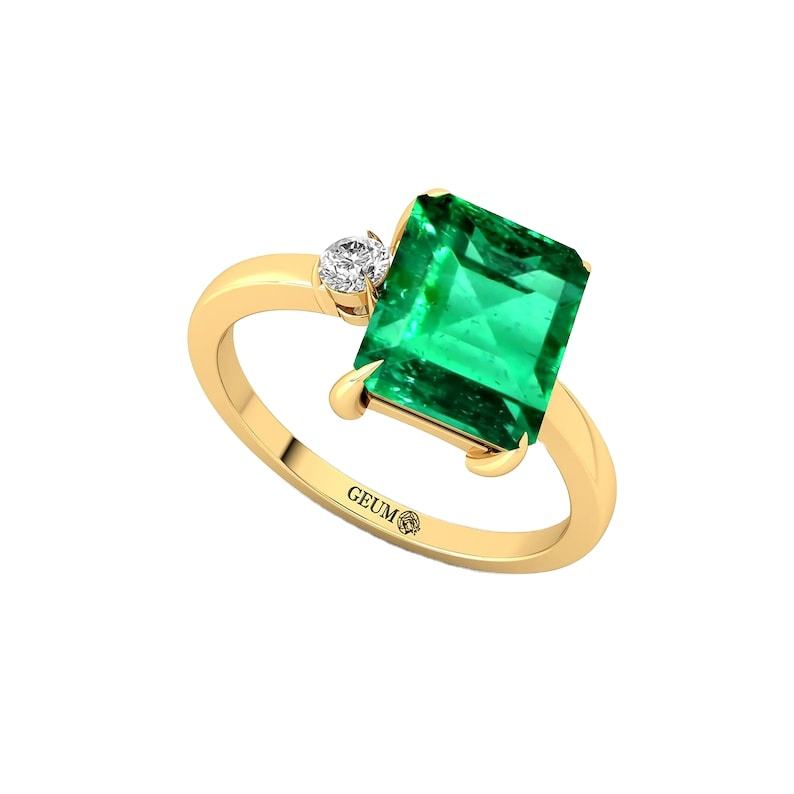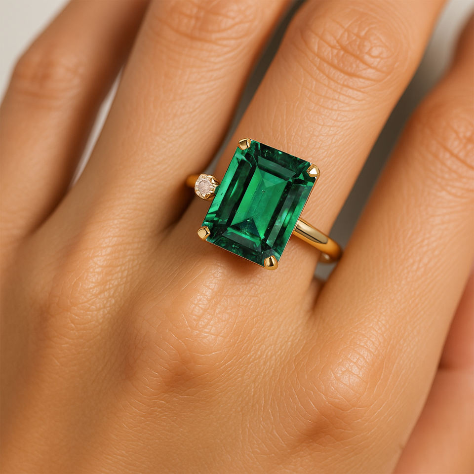 14k White Gold Diamond & Emerald Gemstone Engagement Ring Emerald Cut Center Stone Customized Fine Jewelry Rings OEM